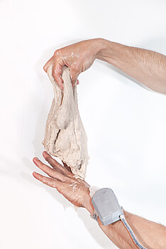 The project investigates how neuroscience and activities such as bread baking can interact and have a therapeutic effect. Sensors on the head and arm measure a person's current mental state. A wearable device on the forearm responds with small vibrations. This “haptic language” can feel like a soothing touch or help the person to control their movements more consciously.