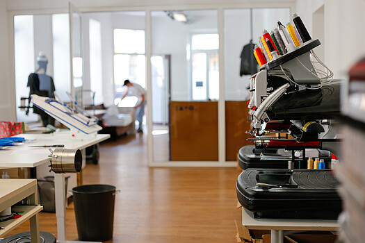 The focus lies on a mix of personal, creative advice and efficient production: Each project starts with a tailored consultation on motif size, fabric and colours, followed by digital design and machine embroidery. Depending on the order, production takes anywhere from a few minutes to a full day. This approach conserves resources — and sustainability plays a role throughout their workflow, from materials to warehouse logistics.